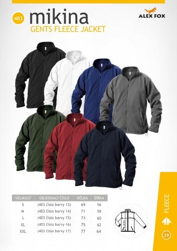 Celezapínacia pánska flísová mikina. Osvedčená a veľmi obľúbená klasika. Ramená sú tvarované pomocou zakomponovaného sedla. Rukávy zakončené lemom a šírka spodného okraja regulovaná elastickou šnúrkou. Dve predné lištové vrecká na zips. Materiál je zošľachtený protižmolkovou úpravou, ktorá výrazne predlžuje životnosť výrobku.